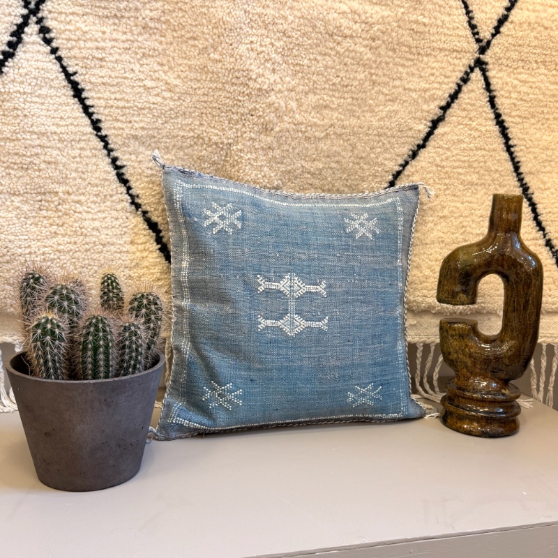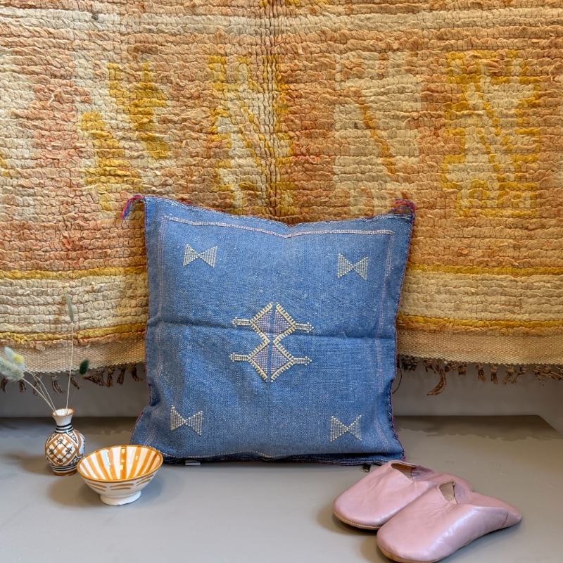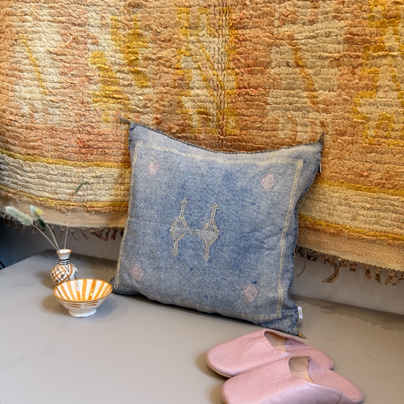 Da die Kissenbezüge zu 100 % handgefertigt sind, gibt es Unvollkommenheiten sowie Unterschiede in Größe und Muster, die den Charme dieser Kissen ausmachen.