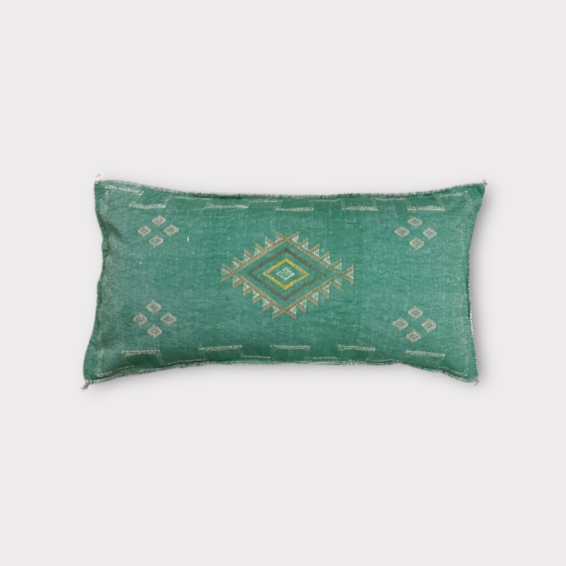 Unique, handmade Moroccan pillowcases in cactus silk - in a beautiful greenish hue.