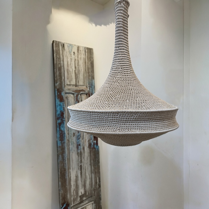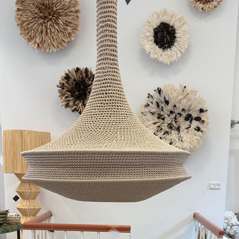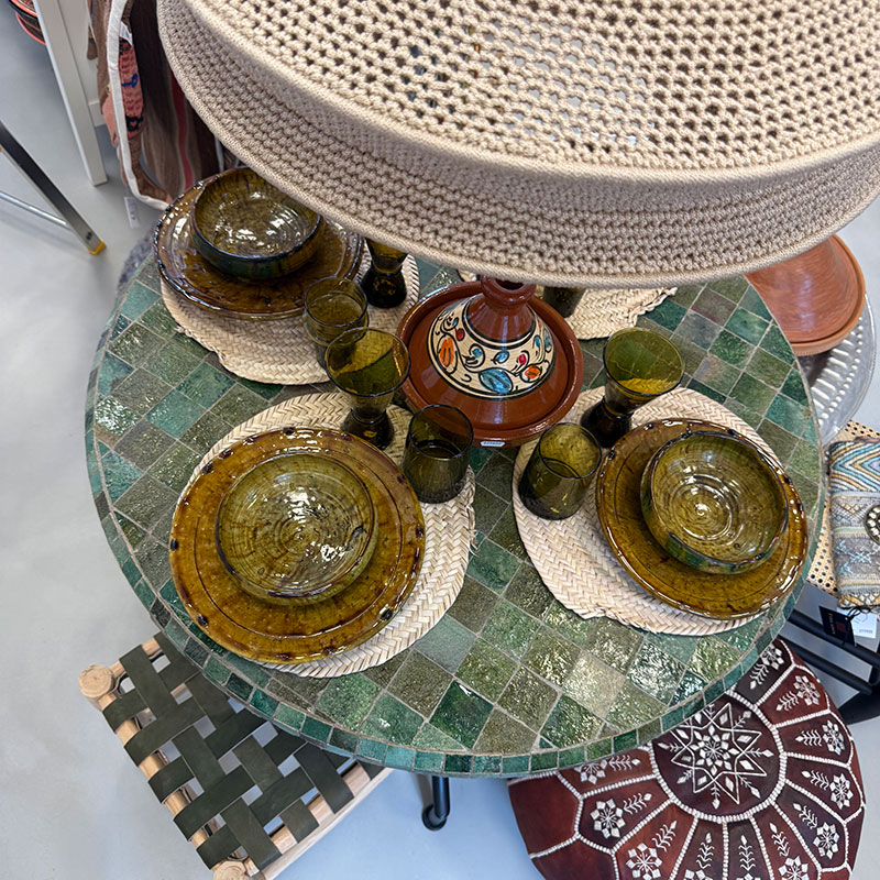 The lamps are handmade by women in a women's cooperative south of Marrakech.