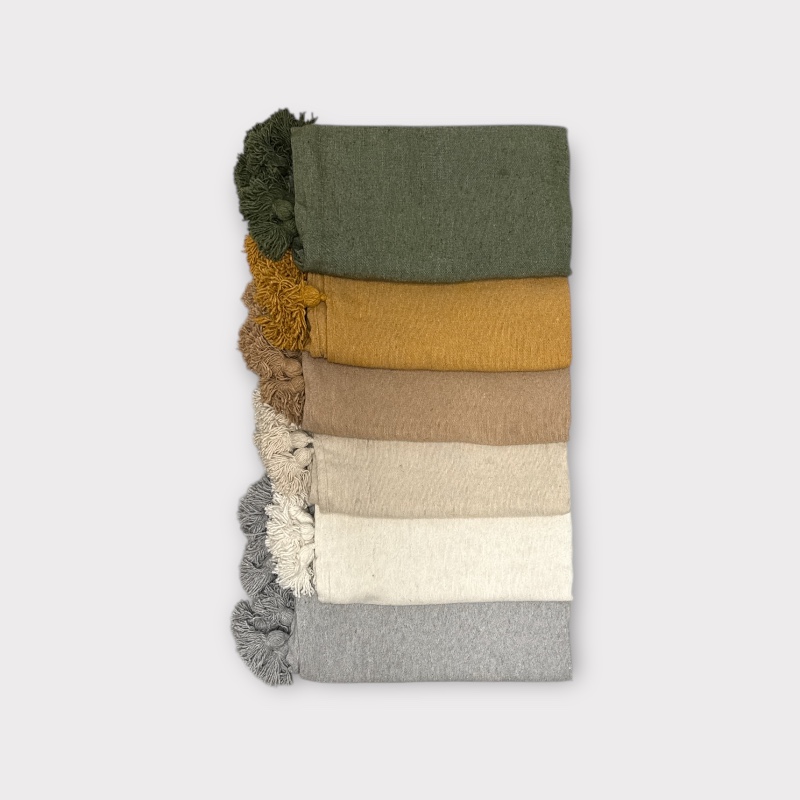 The most beautiful and softest Moroccan throws are available in different colors. All our throws come from a collaboration with a local designer in Marrakech, and are made uniquely for Tibladin.