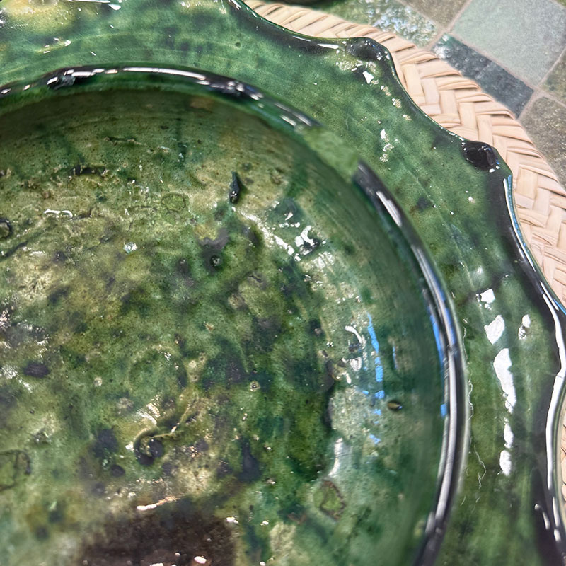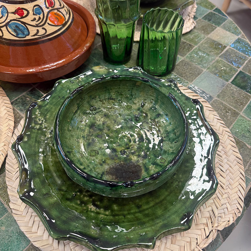 La poterie Tamegroute est une manière traditionnelle de fabriquer de la poterie originaire des Marocains de la région de Zagora. La manière dont elle est fabriquée et sa couleur verte unique sont ce qui caractérise le mieux la céramique. De par sa fabrication, la céramique présente une surface très tactile. En même temps qu'il est fabriqué à la main, il peut également y avoir diverses petites variations dans les tailles, les couleurs et de la surface, ainsi que des imperfections dans la céramique. Cela fait partie du charme qu’elle soit unique et donne plus de caractère à la céramique.