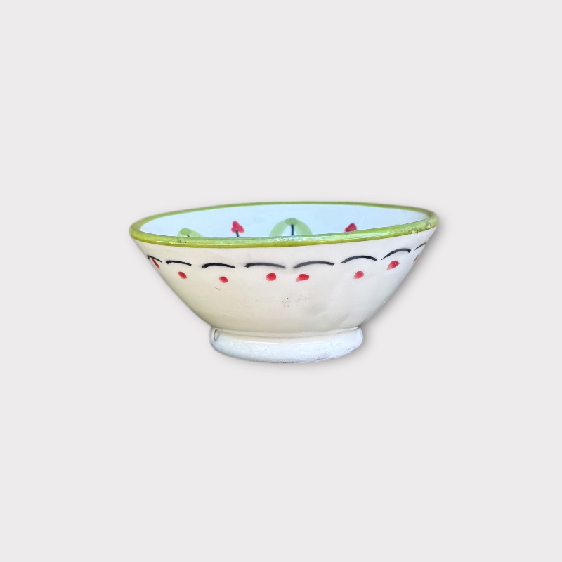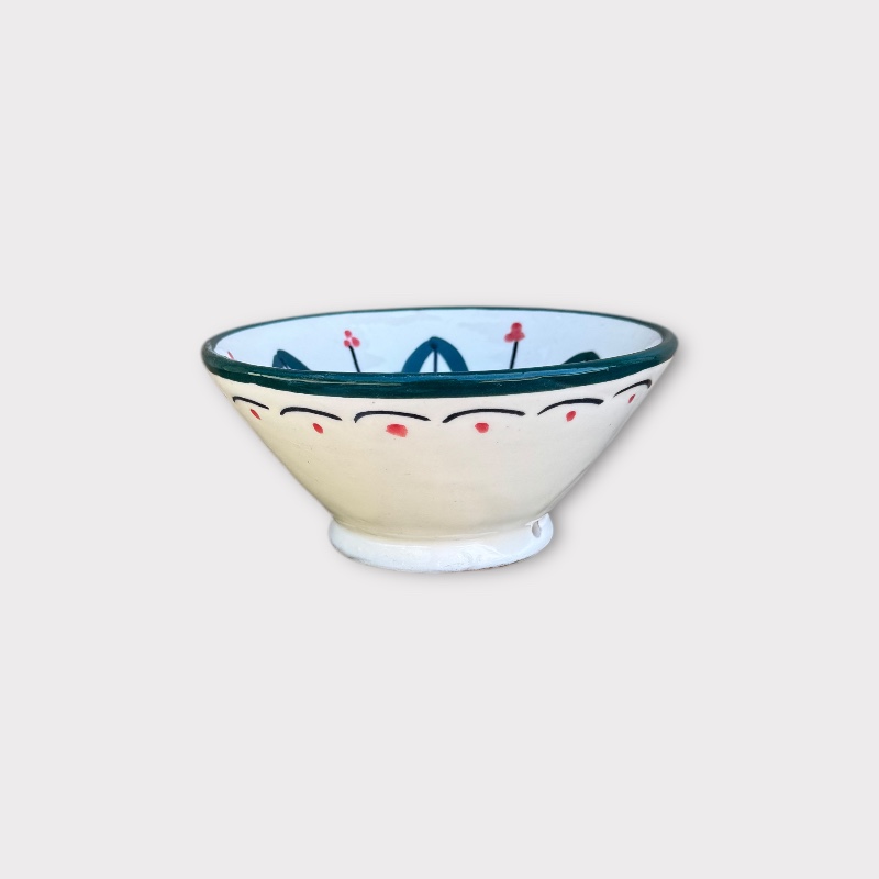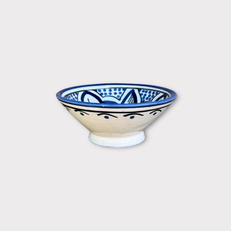 Adorables bols marocains aux motifs aux couleurs éclatantes. Ils mesurent 12 cm de diamètre. Cliquez sur la variante pour découvrir toutes les nuances et tous les motifs. Certains n'en ont qu'un, d'autres un peu plus.