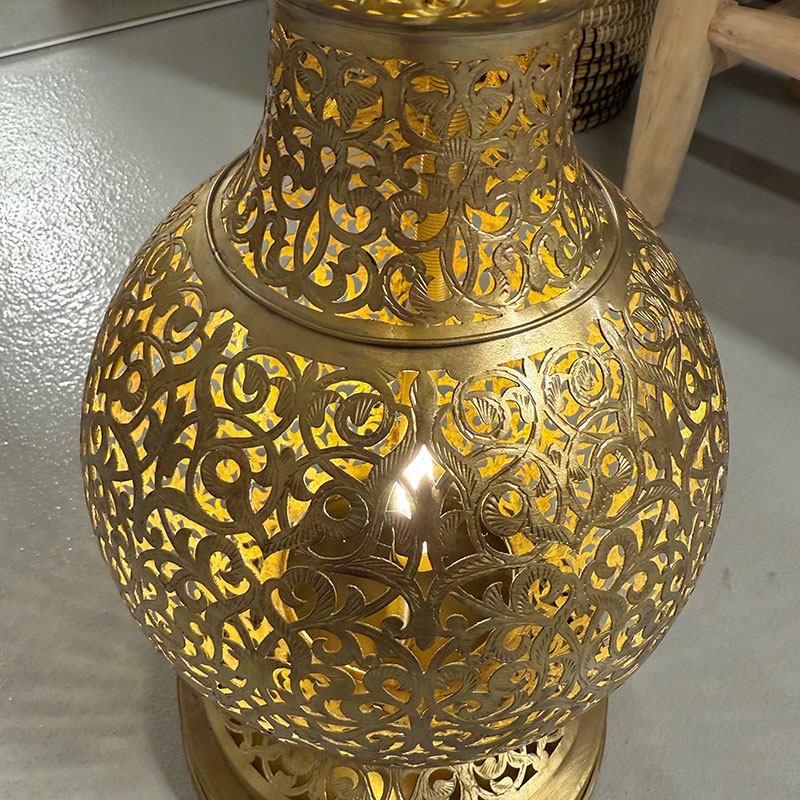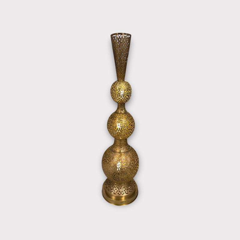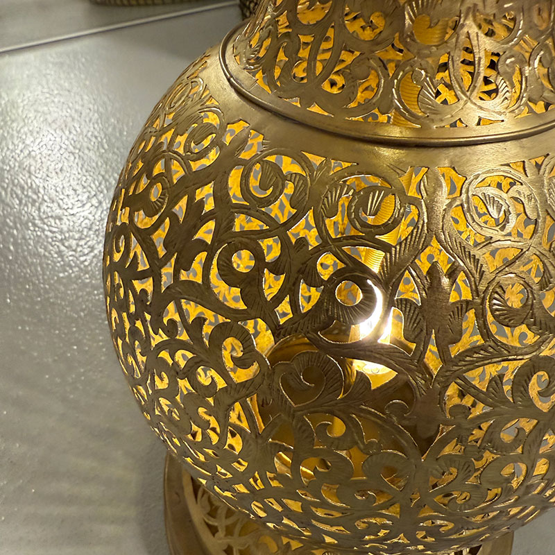 Sculpturale et atmosphérique – Sahara Élégance est une lampe en laiton fabriquée à la main qui apporte une touche de magie des Mille et Une Nuits dans la maison.
