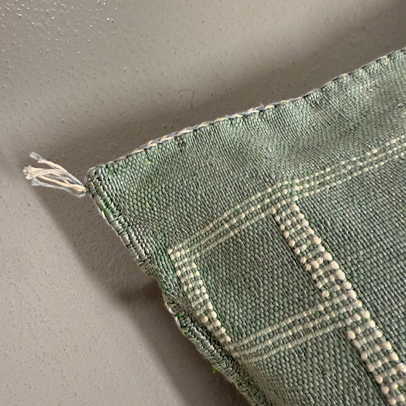 Taies d'oreiller marocaines uniques et faites à la main en soie de cactus - dans de belles nuances vert clair.