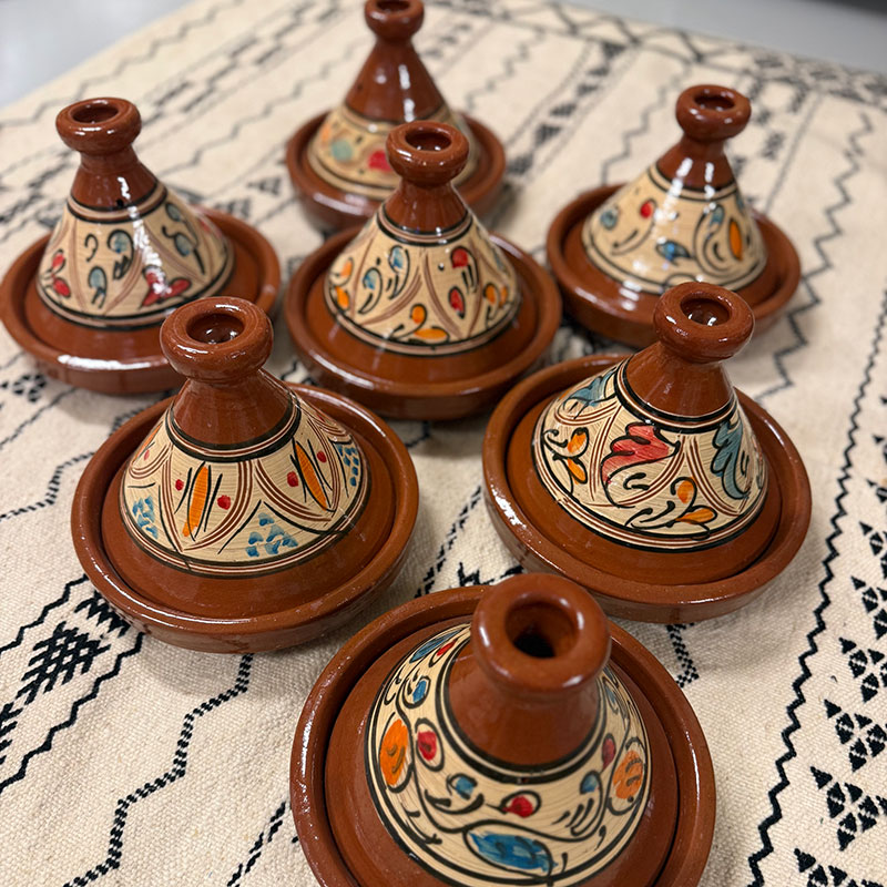 Découvrez les saveurs authentiques du Maroc avec nos magnifiques tajines faits main. Chaque tajine est façonné et décoré par des artisans marocains qualifiés et fabriqué en argile naturelle, approuvée pour la cuisson. Vous pouvez l'utiliser directement sur la cuisinière si vous disposez d'une plaque de cuisson, ou le placer sur votre poêle ou au four, vous permettant ainsi de cuisiner des plats traditionnels : lentement, juteux et savoureux.