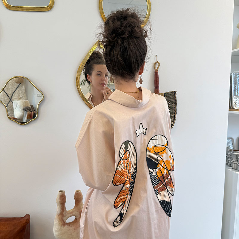 Les tuniques sont en coton 100% et peuvent donc être lavées en machine jusqu'à 40 degrés. Nous recommandons également de repasser les tuniques à la vapeur/repassage pour éviter les plis et les plis.