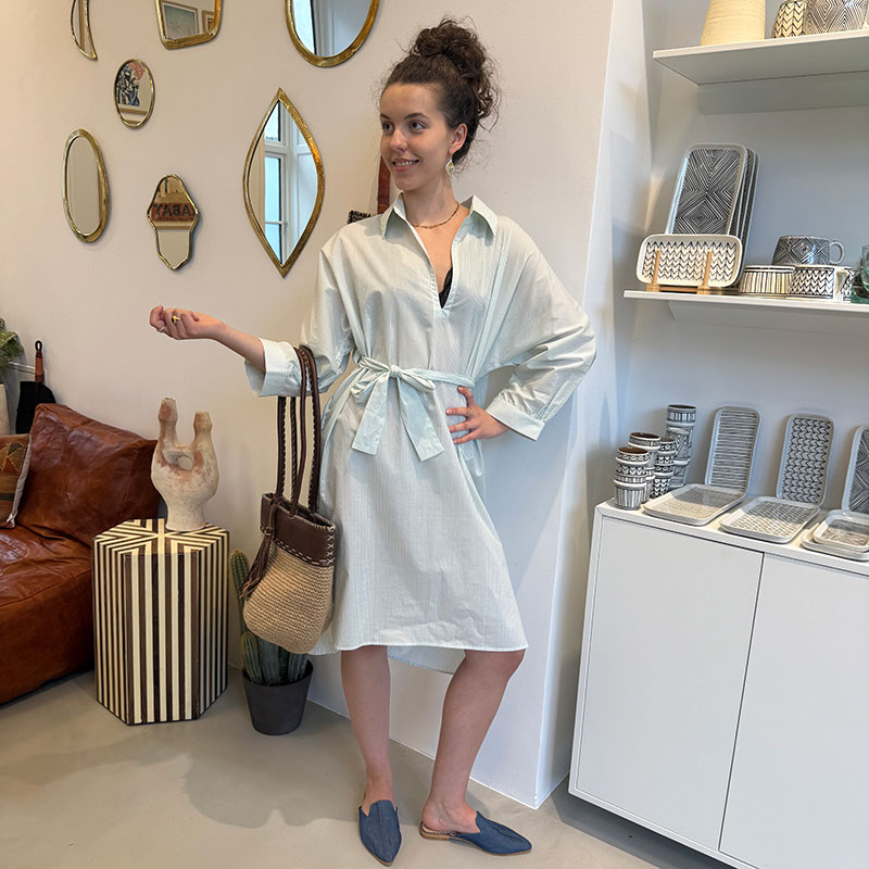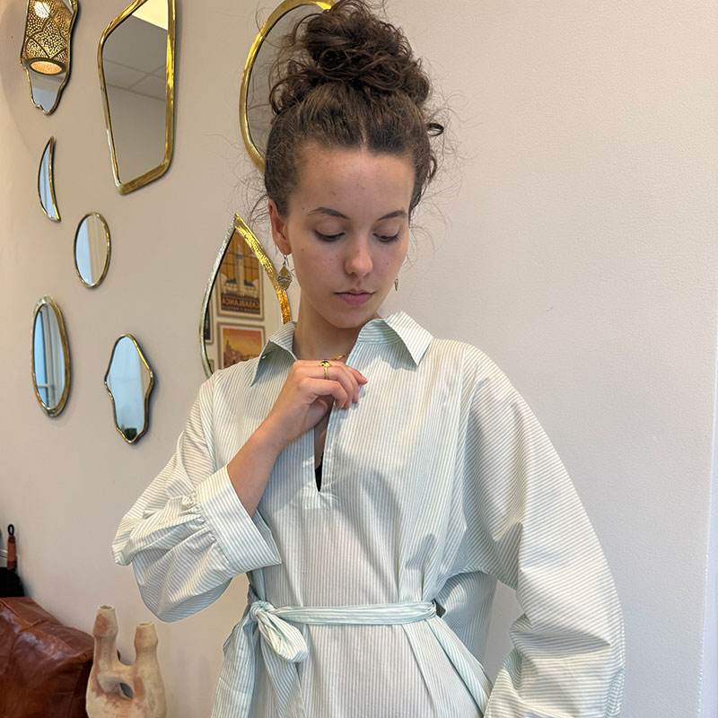 Ces belles tuniques marocaines sont cousues main en coton 100% et respirent la vie et la couleur. Les tuniques sont confectionnées en collaboration avec un créateur et tailleur à Marrakech, et ensemble nous avons soigneusement sélectionné les couleurs, les matières et les motifs pour chaque tunique. C'est pourquoi ils sont également tout à fait uniques : il n'y en a qu'un de chaque et ces modèles ne peuvent être trouvés nulle part ailleurs. La coupe des belles tuniques est ample et confortable, mais en même temps flatteuse et délicieuse. La tunique peut être utilisée aussi bien à la maison, au bureau que pour une sortie à la plage ou sur la terrasse par une chaude journée d'été.
