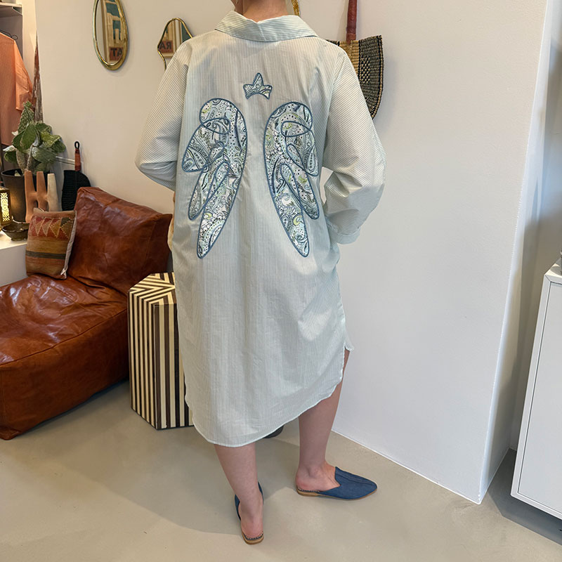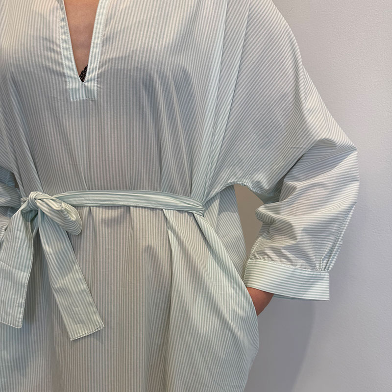 Les tuniques sont en coton 100% et peuvent donc être lavées en machine jusqu'à 40 degrés. Nous recommandons également de repasser les tuniques à la vapeur/repassage pour éviter les plis et les plis.