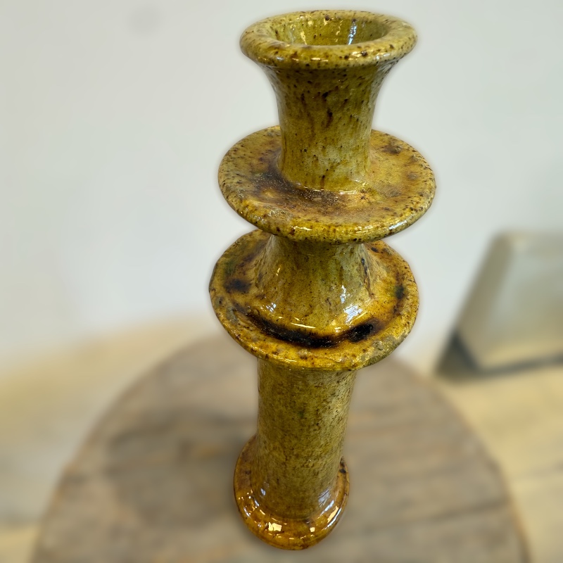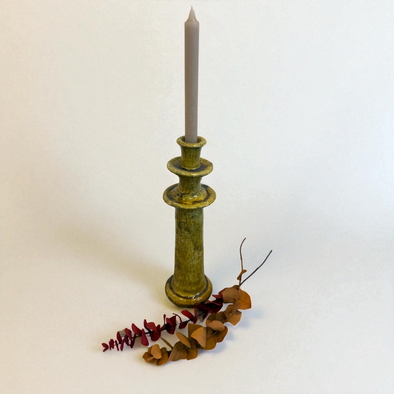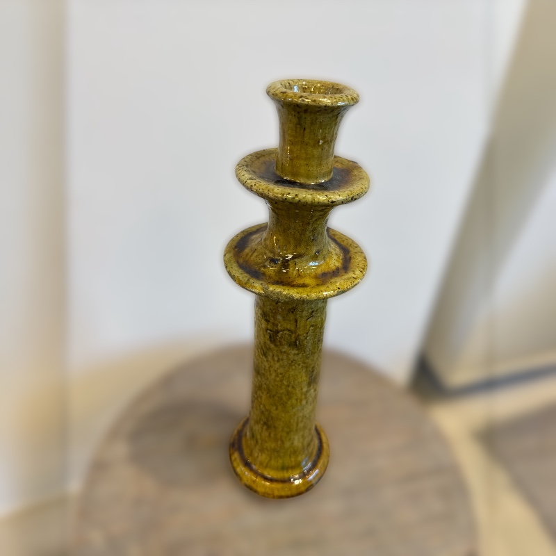 Vakker lysestake i gul Tamegroute-keramikk, håndlaget i Marokko. Den varme, gylne glasuren og det rustikke utseendet gjør hver lysestake helt unik.