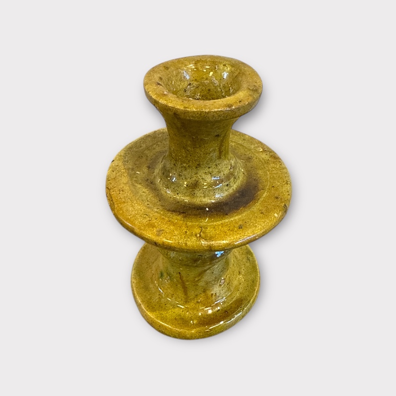 Vakker lysestake i gul Tamegroute-keramikk, håndlaget i Marokko. Den varme, gylne glasuren og det rustikke utseendet gjør hver lysestake helt unik.