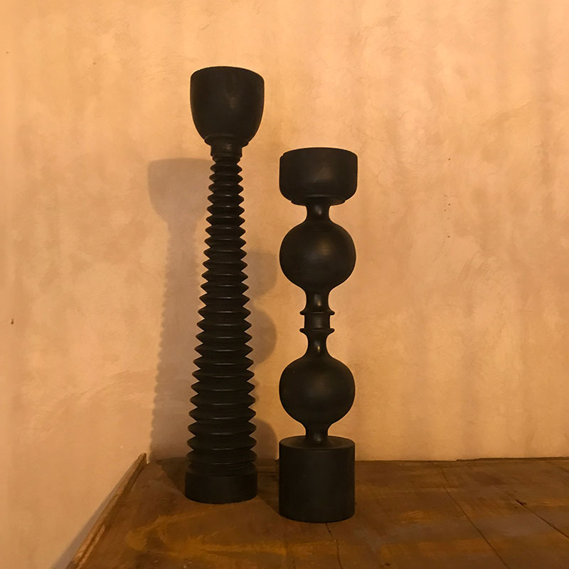 Elegant og hånddreiet lysestake i svartmalt treverk med tydelige marokkanske referanser i formen. Designet kombinerer organiske kurver og geometriske linjer, noe som gir et moderne og samtidig bohemsk-inspirert uttrykk. Perfekt for LED- eller blokklys og ideell som et blikkfang på spisebordet, i vinduskarmen eller i et stilig stilleben.