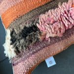 Prachtige handgemaakte kussenhoezen van vintage Berbe tapijt van wol met pluche motief. Hier worden vintage tapijten uit Marokko nieuw leven ingeblazen in een kussenhoes. De achterkant is van kiria-katoen.