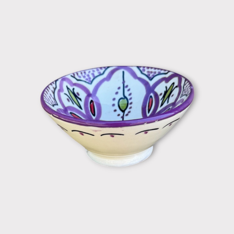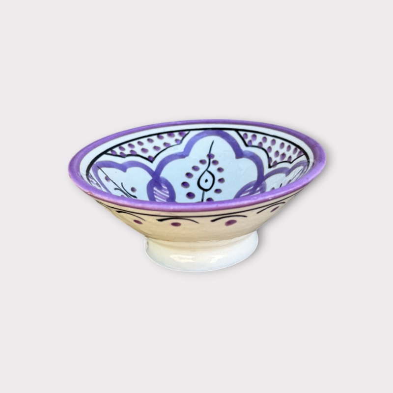Schattige Marokkaanse kommen met een patroon in de mooiste violette tinten. De kommen hebben een diameter van 12 cm. Klik op de variant om alle tinten en patronen te bekijken. Sommige hebben er maar één, andere iets meer.