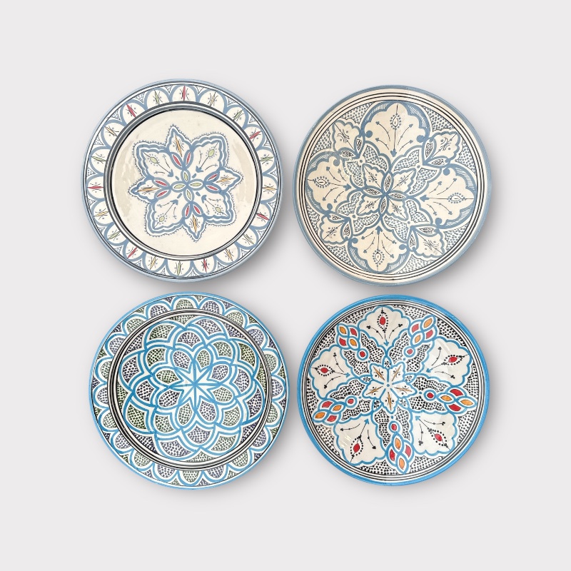 Prachtig Marokkaans servies in mooie lichtblauwe tinten met unieke, handgeschilderde Marokkaanse patronen.