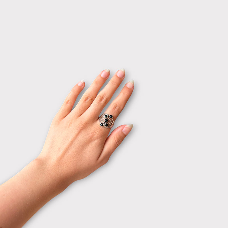 Om ONYX schoon te maken, kunt u voorzichtig een zachte doek en eventueel een parfumzeep gebruiken. Spoel de stenen af en droog ze grondig af. Laat de ring niet aan de lucht drogen.