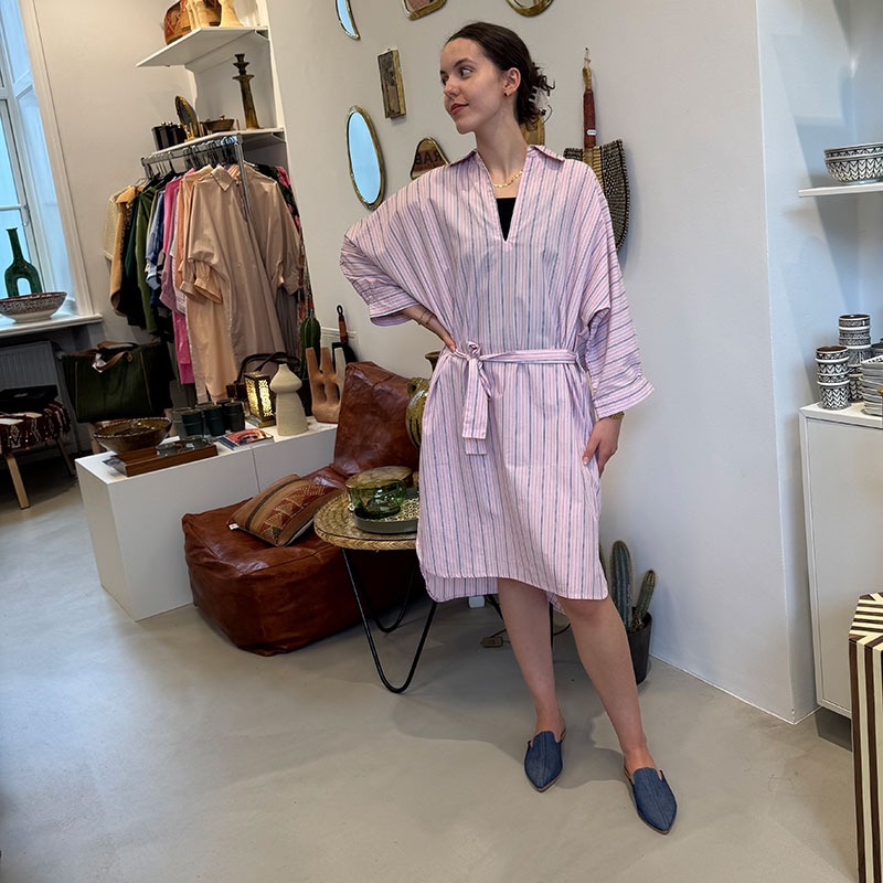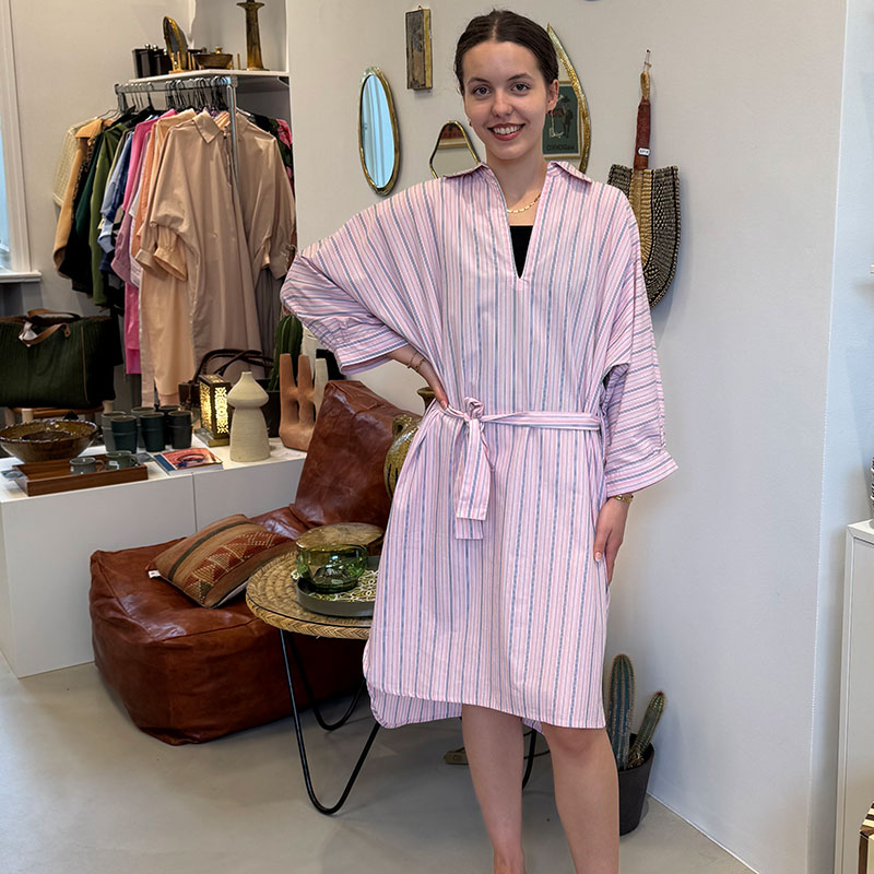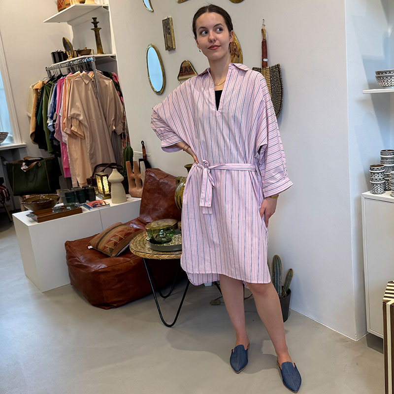 Deze prachtige Marokkaanse tunieken zijn met de hand gestikt in 100% katoen en stralen leven en kleur uit. De tunieken zijn gemaakt in samenwerking met een ontwerper en kleermaker in Marrakech, en samen hebben we voor elke tuniek zorgvuldig de kleuren, materialen en patronen geselecteerd. Daarom zijn ze ook volkomen uniek: van elk is er maar één, en deze ontwerpen vind je nergens anders. De pasvorm van de prachtige tunieken is los en comfortabel, maar tegelijkertijd flatterend en heerlijk. De tuniek kan zowel thuis, op kantoor als voor een uitstapje naar het strand of terras op een warme zomerdag gebruikt worden.