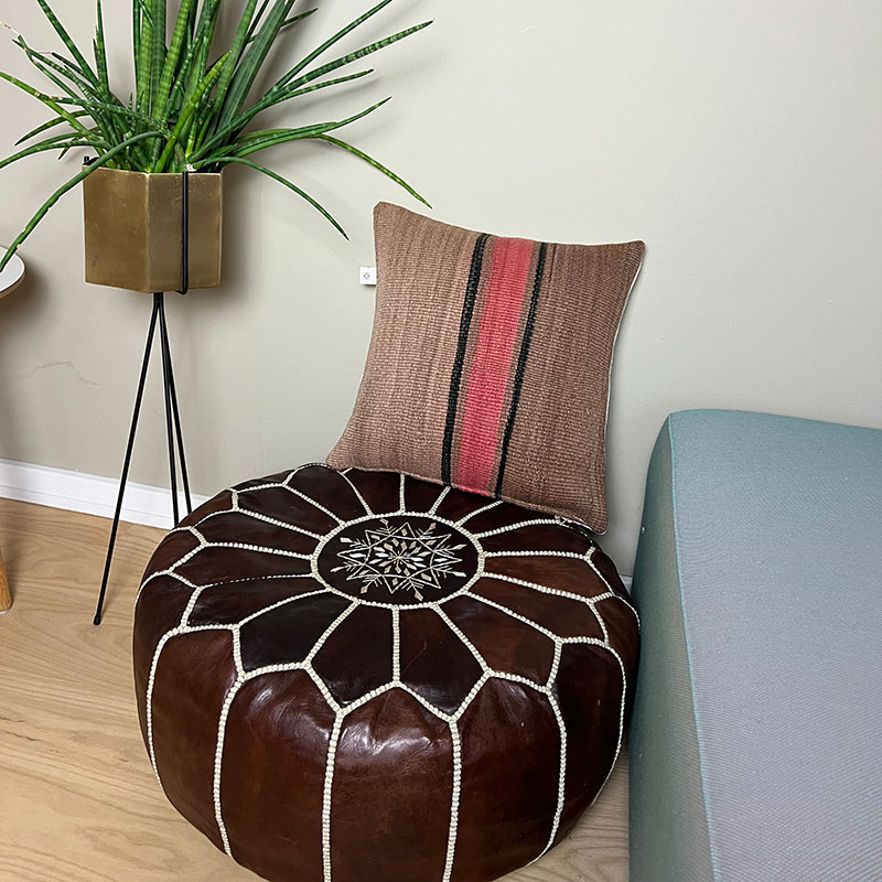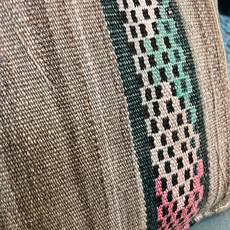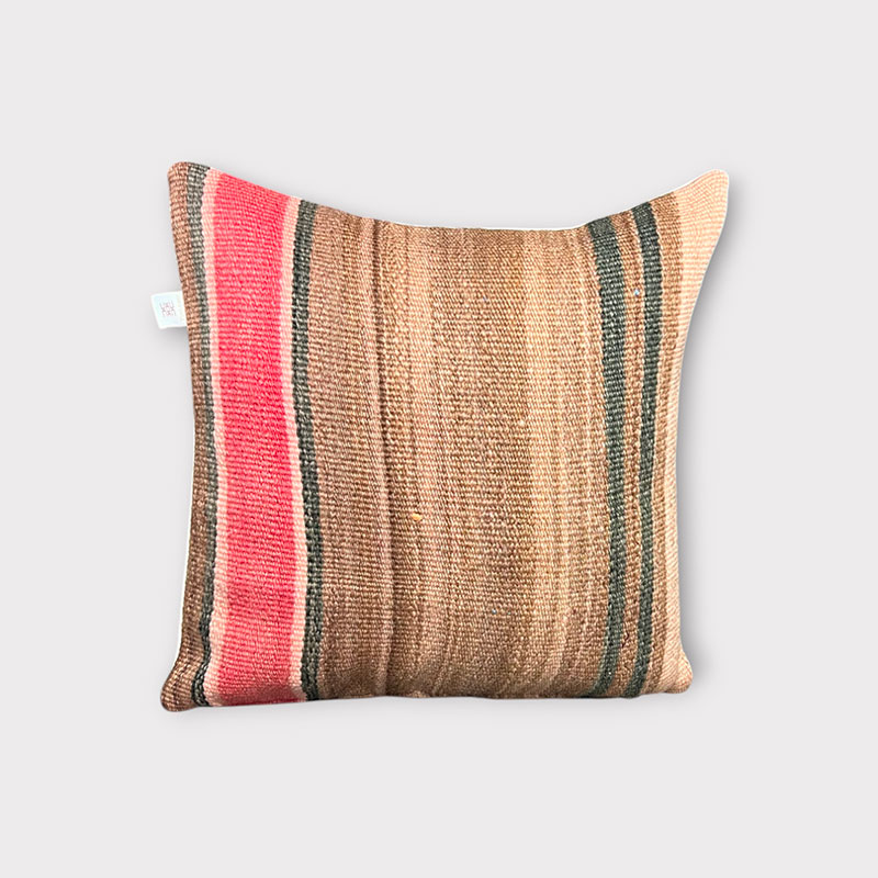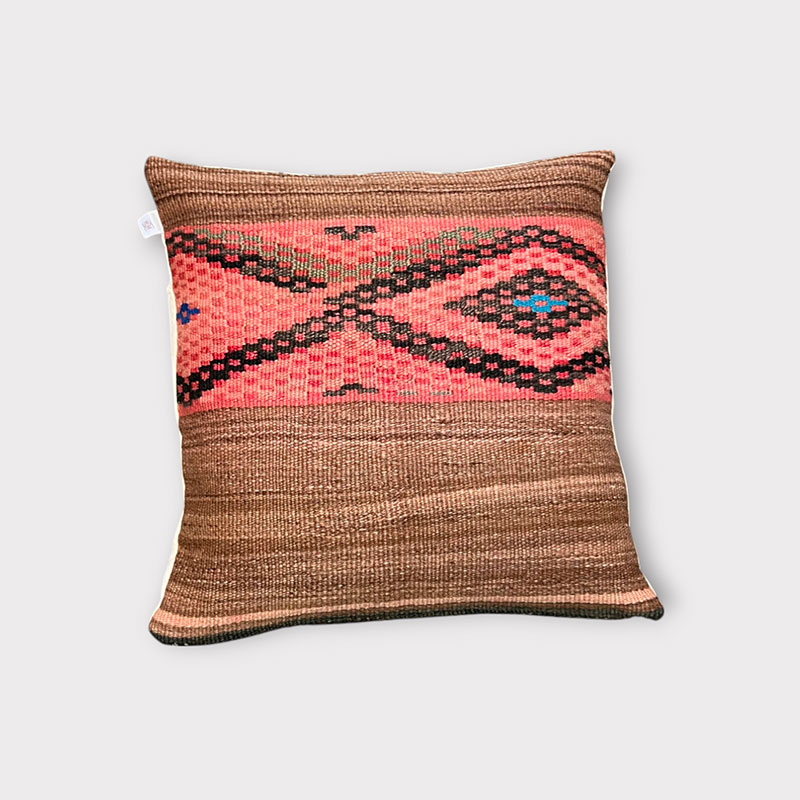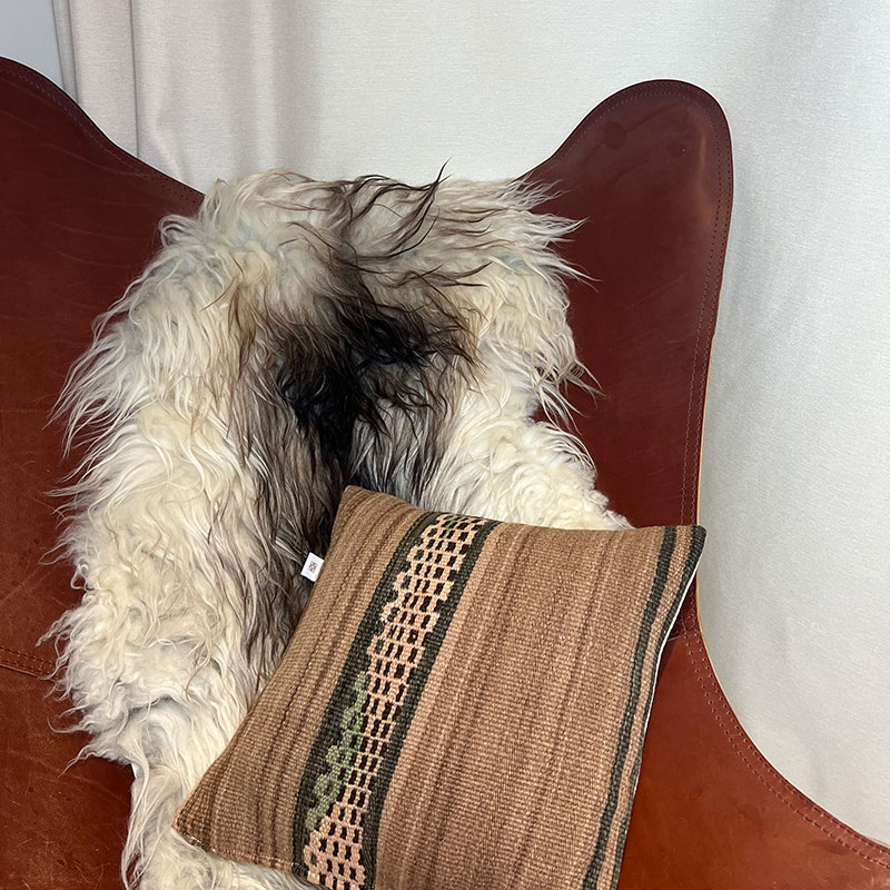 Deze prachtige handgemaakte kussenhoezen zijn gemaakt van vintage wollen vloerkleden. De voorkant van de kussensloop is van vintage Berbertapijt met een pluche rand, terwijl de achterkant van kiria-katoen is. Hier worden vintage tapijten uit Marokko nieuw leven ingeblazen in een kussenhoes die de warme tinten van het katoen combineert met de prachtige stoffen en patronen van de tapijten. De prachtige vintage tapijten brengen kleuren en spannende patronen in huis en afhankelijk van welk vintage tapijt we hebben gekozen, krijg je een geheel uniek kussen. De kussens passen perfect in het Scandinavische huis, waar de warme kleuren en patronen een eenvoudige en tijdloze stijl complementeren.