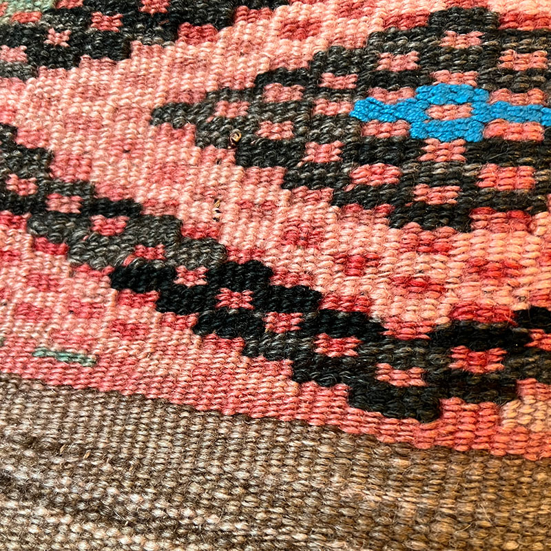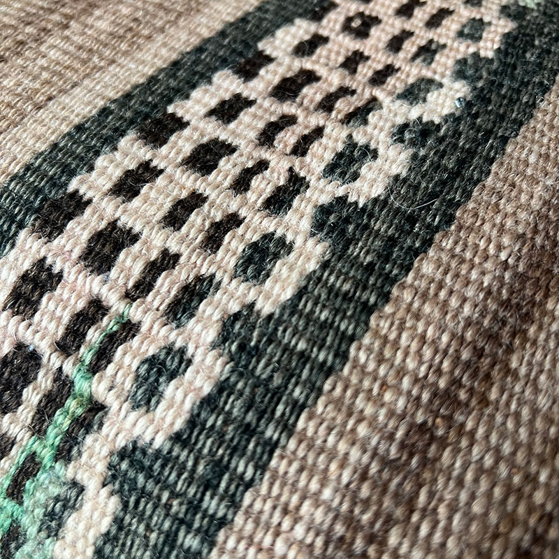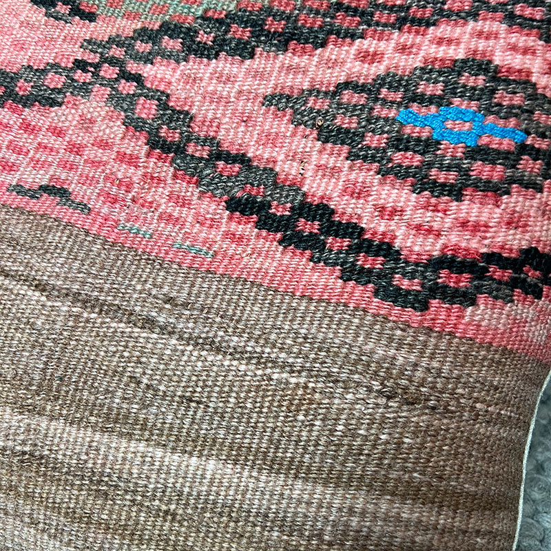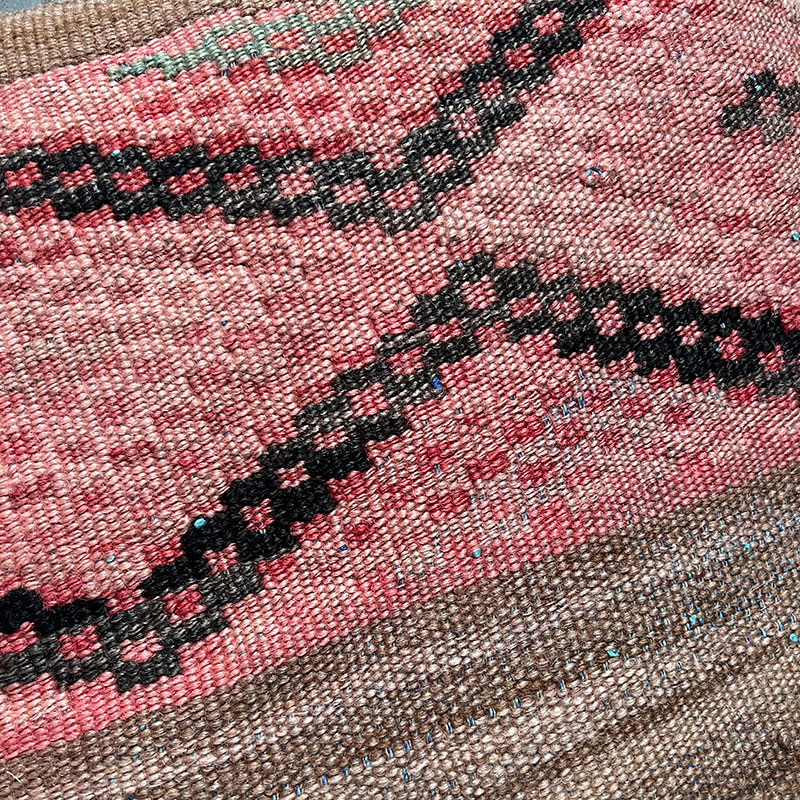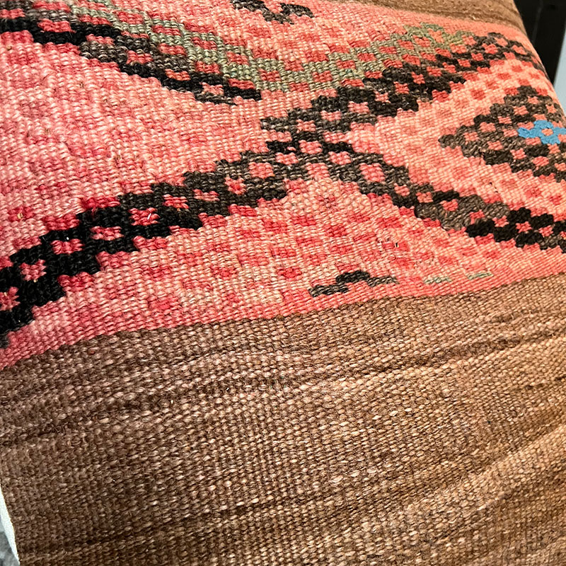 De kussenslopen zijn gemaakt van vintage wollen Kelim-tapijten met een achterkant van kiria-katoen. Stomerij bij een stomerij. Omdat de hoezen delen van vintage Kelim-tapijten bevatten, zullen er gebruikssporen op zitten, wat slechts een deel van de charme is.