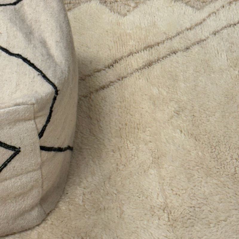 Støvsug Beni Ouarain tæppe jævnligt og tag det udenfor og ryst det engang i mellem. Pletter fjernes ved hurtigst muligt at suge pletten op med en klud og derved duppe pletten med en fugtig klud. Tæppet er 100 % ren uld og er fra naturens side dækket med lanolin på hver fiber som gør at pletter ikke trænger ned i tæppet. Skulle vi være så heldige at få sne en vinter i Danmark, så læg endelig tæppet ud i den hvide sne. Dette vil rengøre tæppet i bund – helt naturligt.