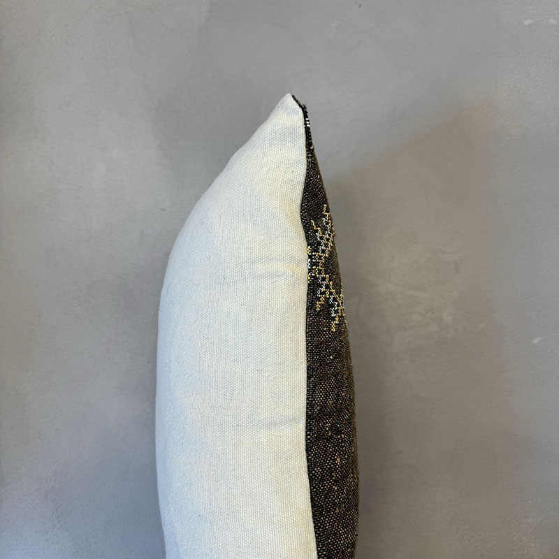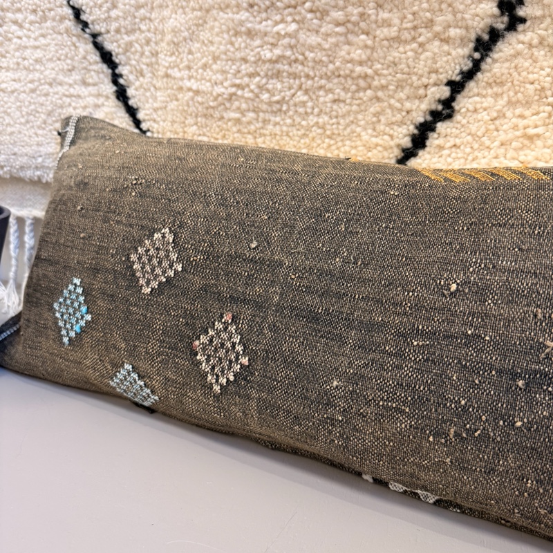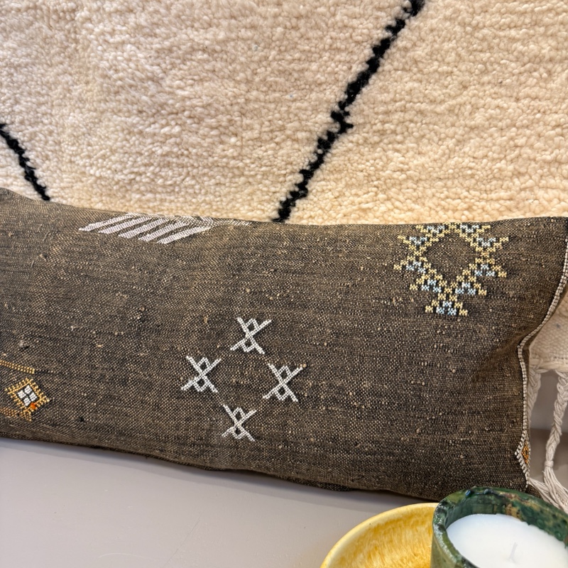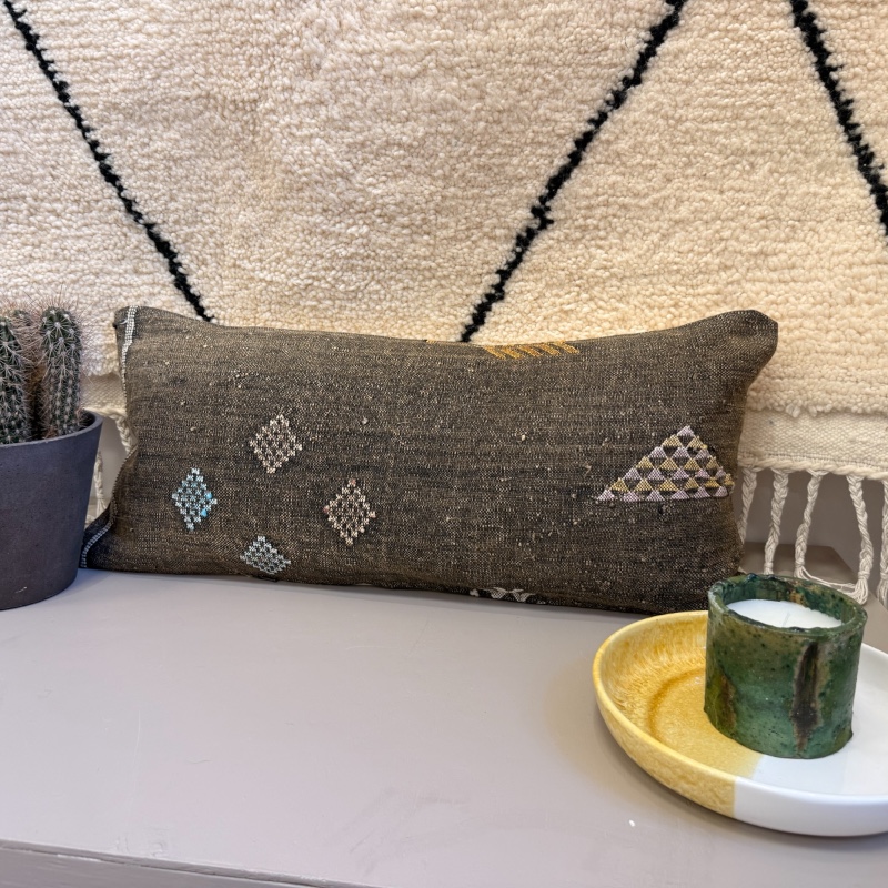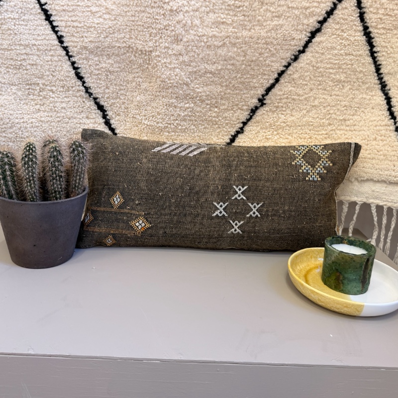 Unikke, håndlavede marokkanske pudebetræk i brune nuancer med fint broderet motiv. Puderne har en kiria bomuld på bagsiden.