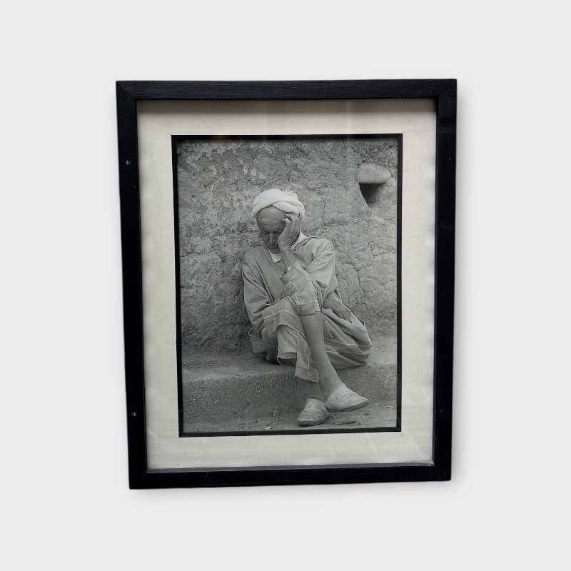 Låt dig inspireras av detta vackra marockanska svartvita foto. Fotot är placerat i en rustik svart passepartoutram i trä.
